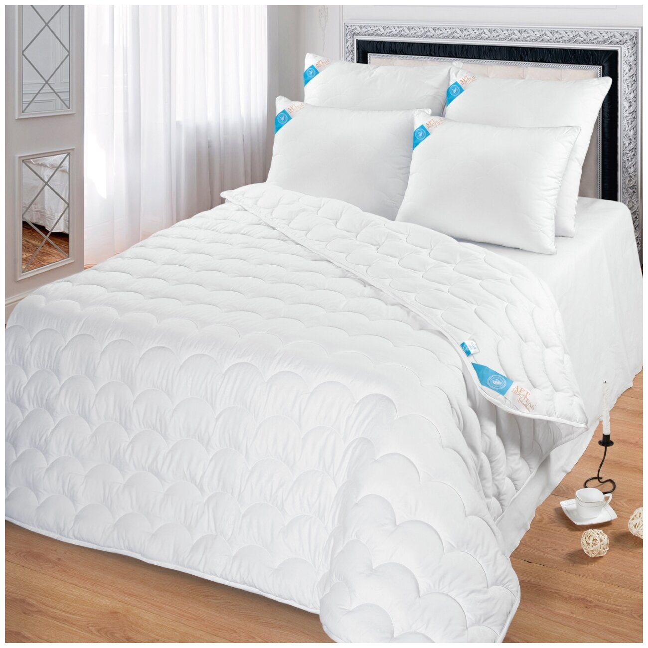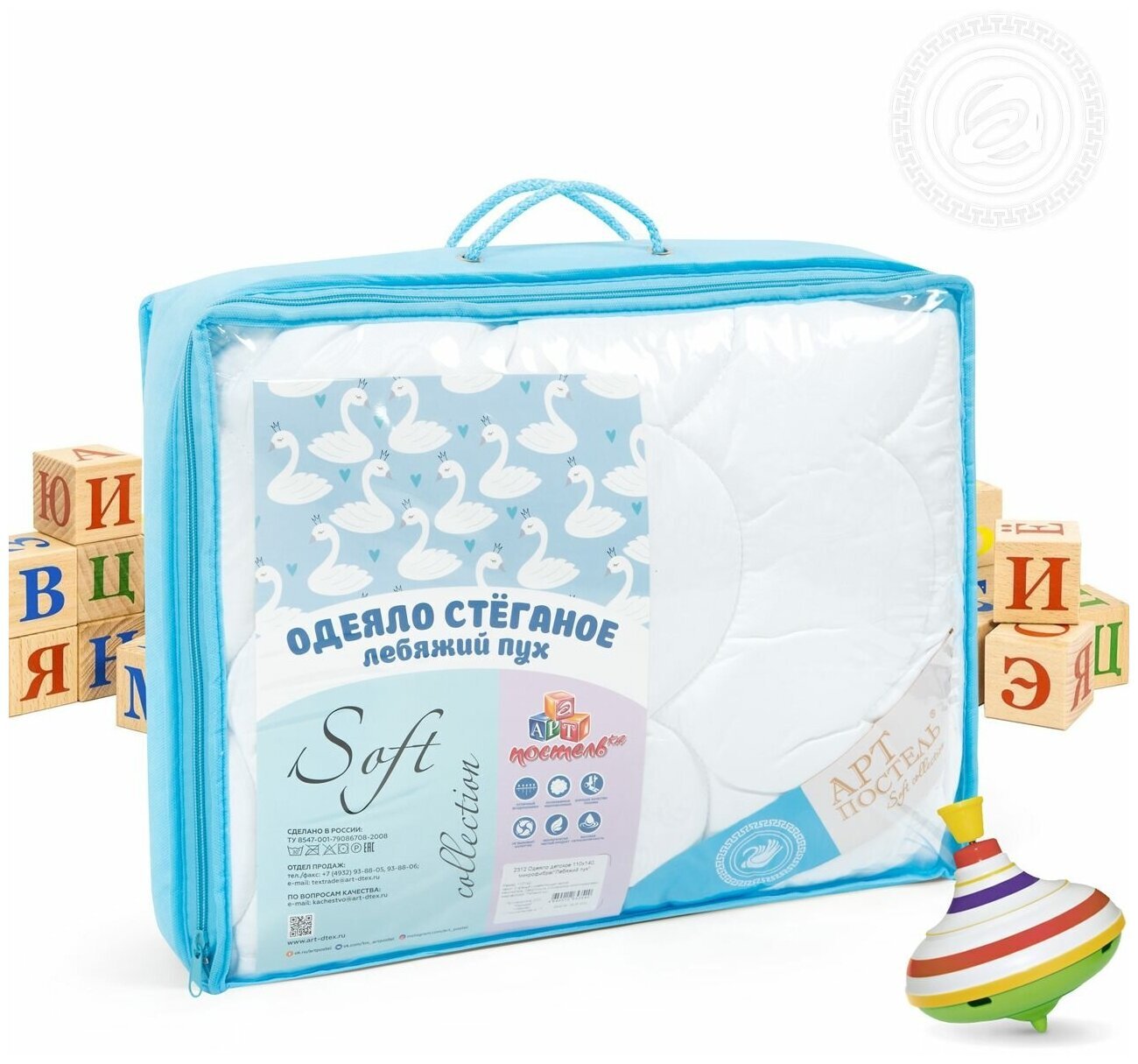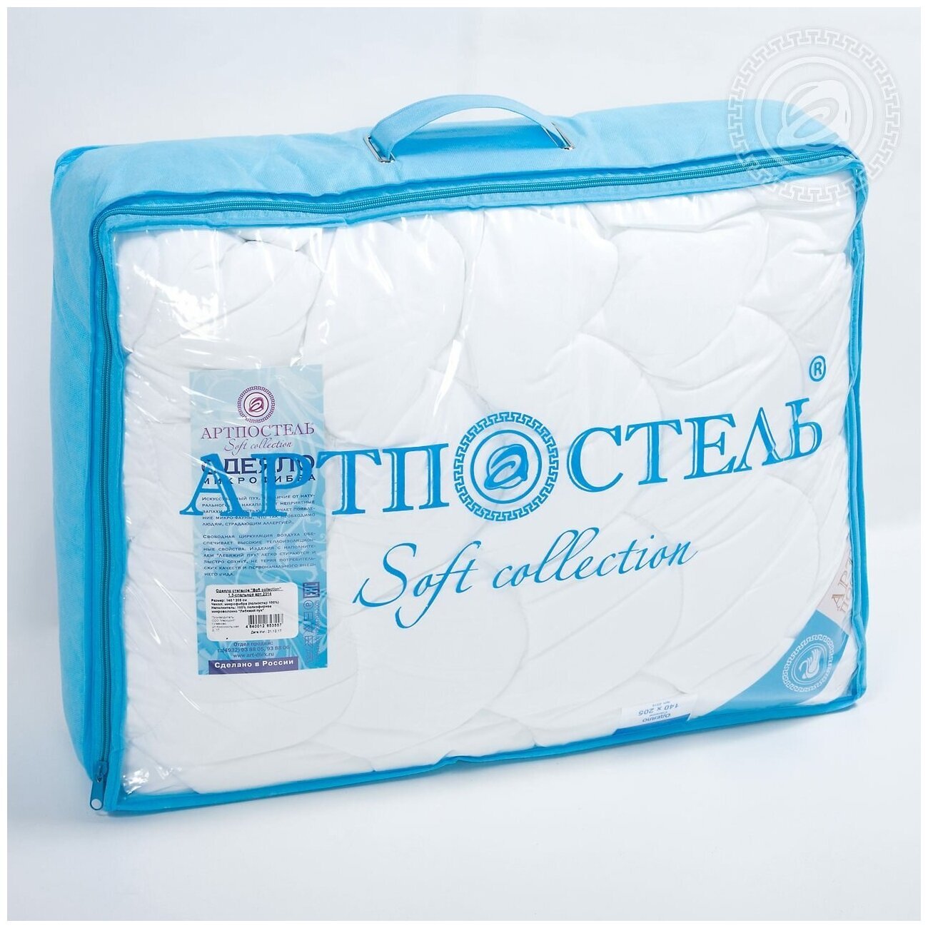 Изделия с наполнителем «Лебяжий пух» легкие и мягкие, легко стираются и быстро сохнут. Не теряя своих качеств и первоначального вида. Чехлы одеял «Soft» выполнены из современного, дышащего и мягкого на ощупь материала - микрофибра. Состав: высокомолекулярное полиэфирное волокно, плотность ткани - 115 гр./кв.м. Ткань имеет сатиновое переплетение, рисунок нанесен способом термического тиснения.