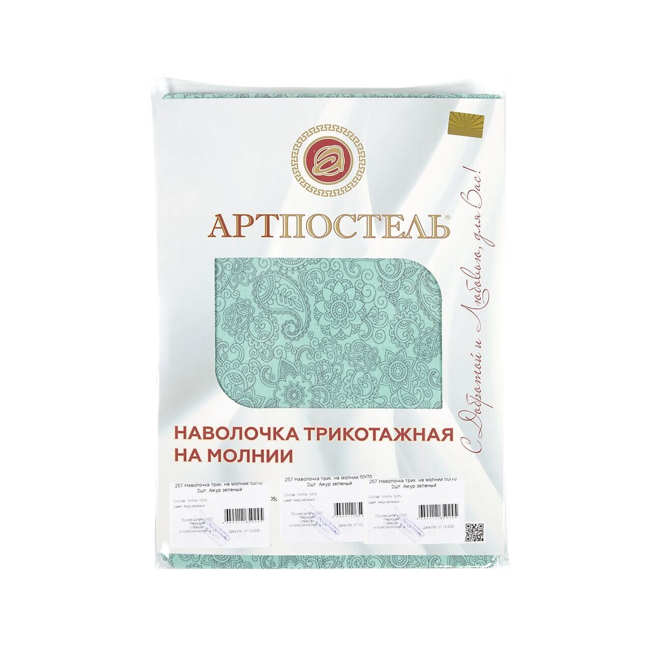Наволочка трикотажная на молнии "Арт-Постель" Ажур зелёный 2шт. (50х70) арт. 257