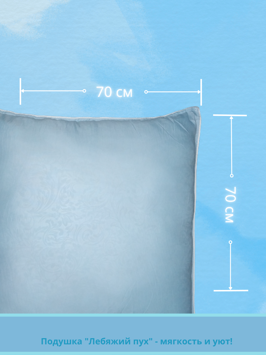 Подушка оснащена гипоаллергенным наполнителем из искусственного и лебяжьего пуха, что делает ее безопасной для людей с аллергией. Это значит, что подушка не вызывает раздражения и не требует постоянного ухода.