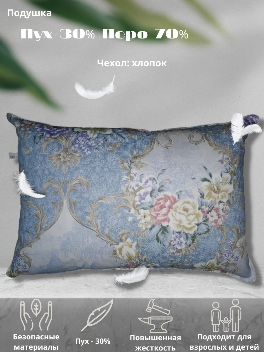 Подушка Самсон пухоперовая 30% пух, 70% перо, чехол тик 50*70 - это сочетание комфорта и качества, которое подарит вам здоровый и восстанавливающий сон.
