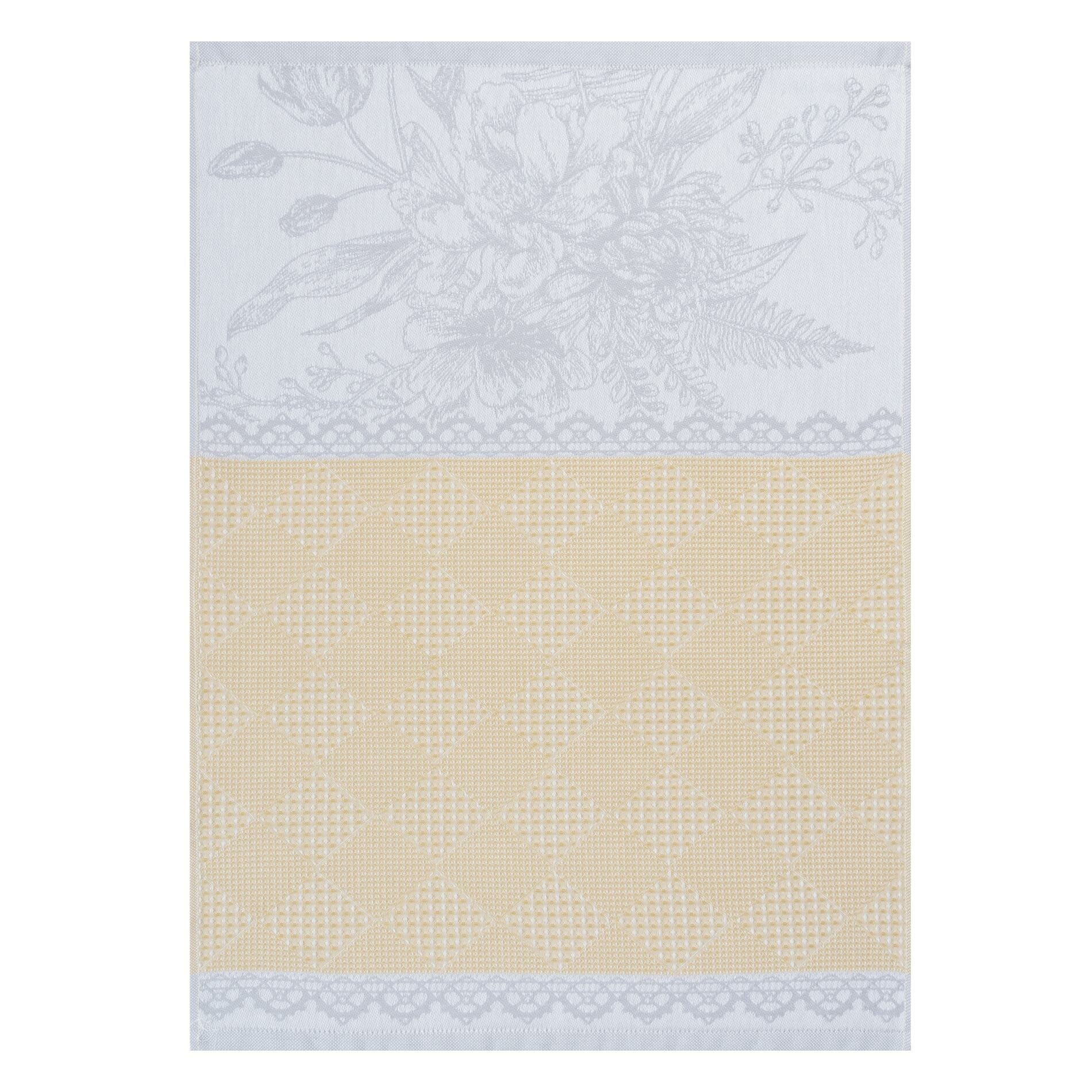 Горчичный цвет полотенца Cleanelly с абстрактным рисунком подойдет к любому интерьеру кухни и станет отличным подарком на 8 Марта.
