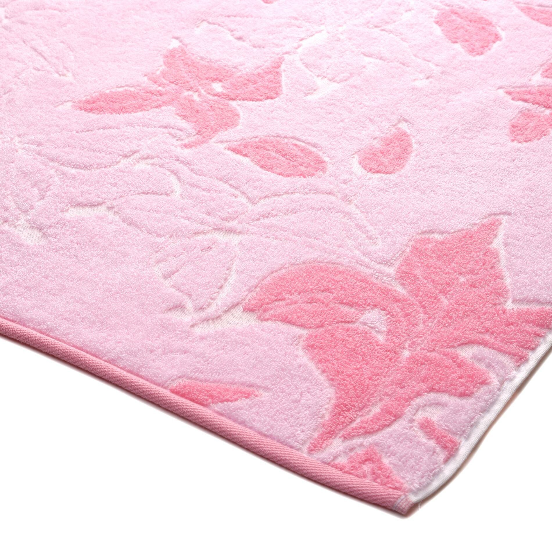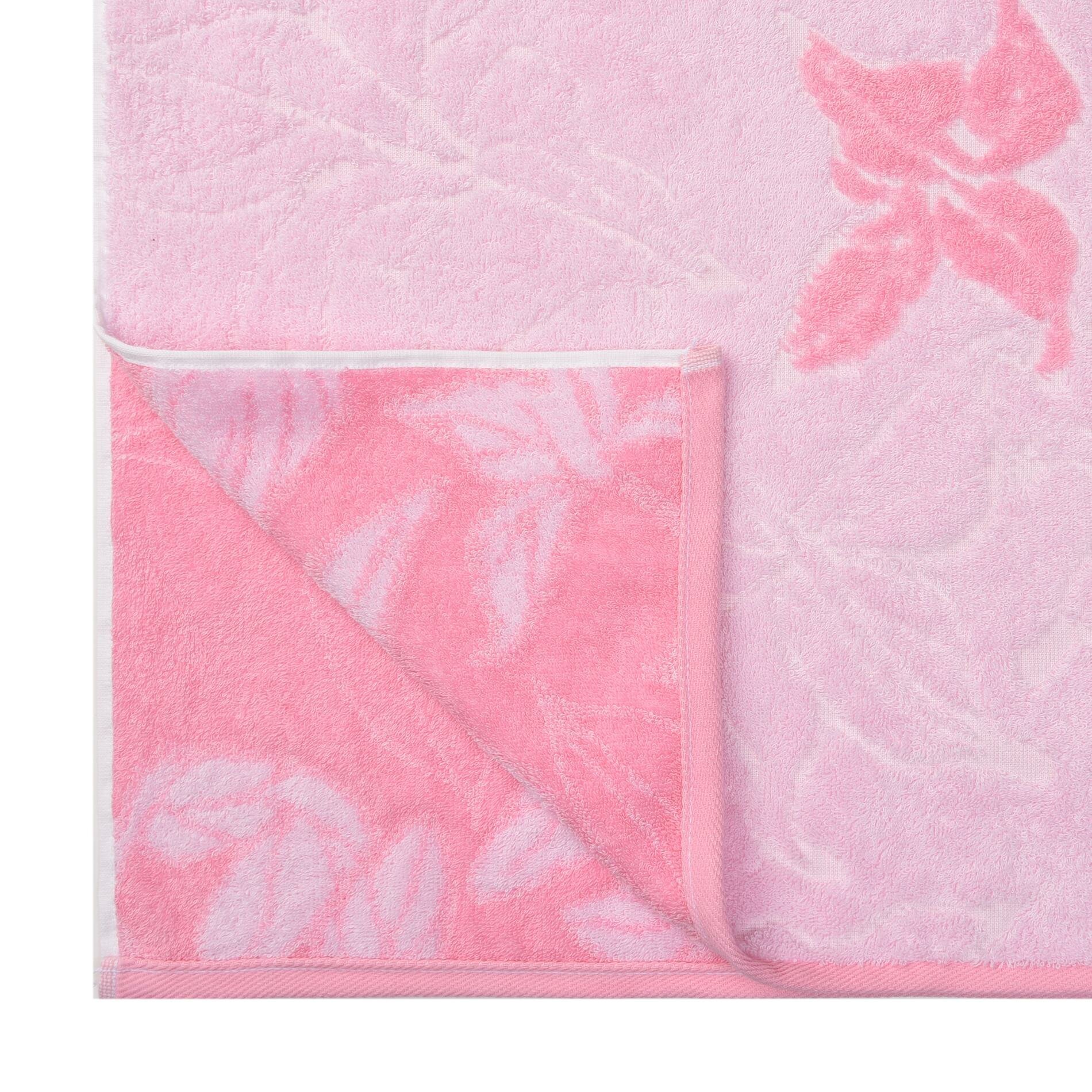 Дизайн полотенца выполнен в светло-розовом цвете с рисунком в виде цветов, что придает ему неповторимый и стильный вид.