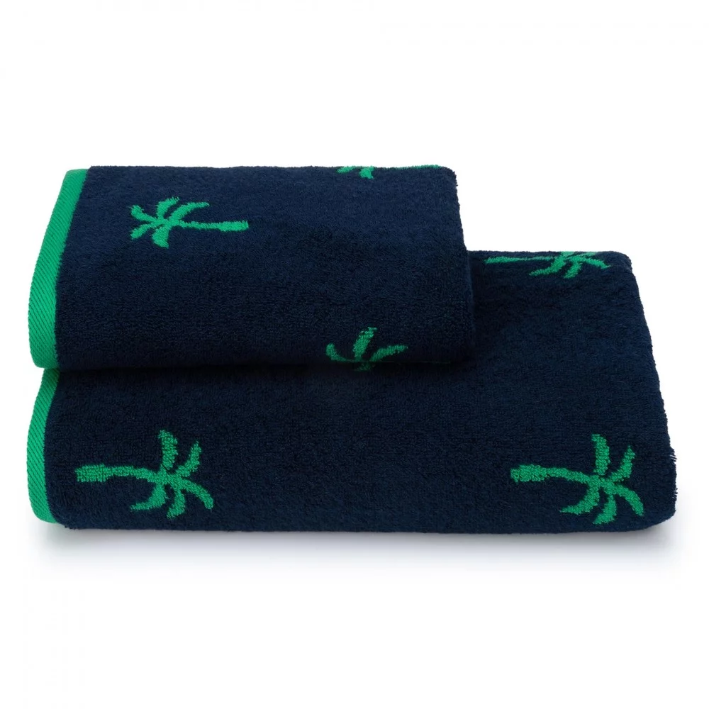 Дизайн полотенца выполнен в приятных синих и зеленых тонах с рисунком растений, что добавляет изделию эстетическую привлекательность.