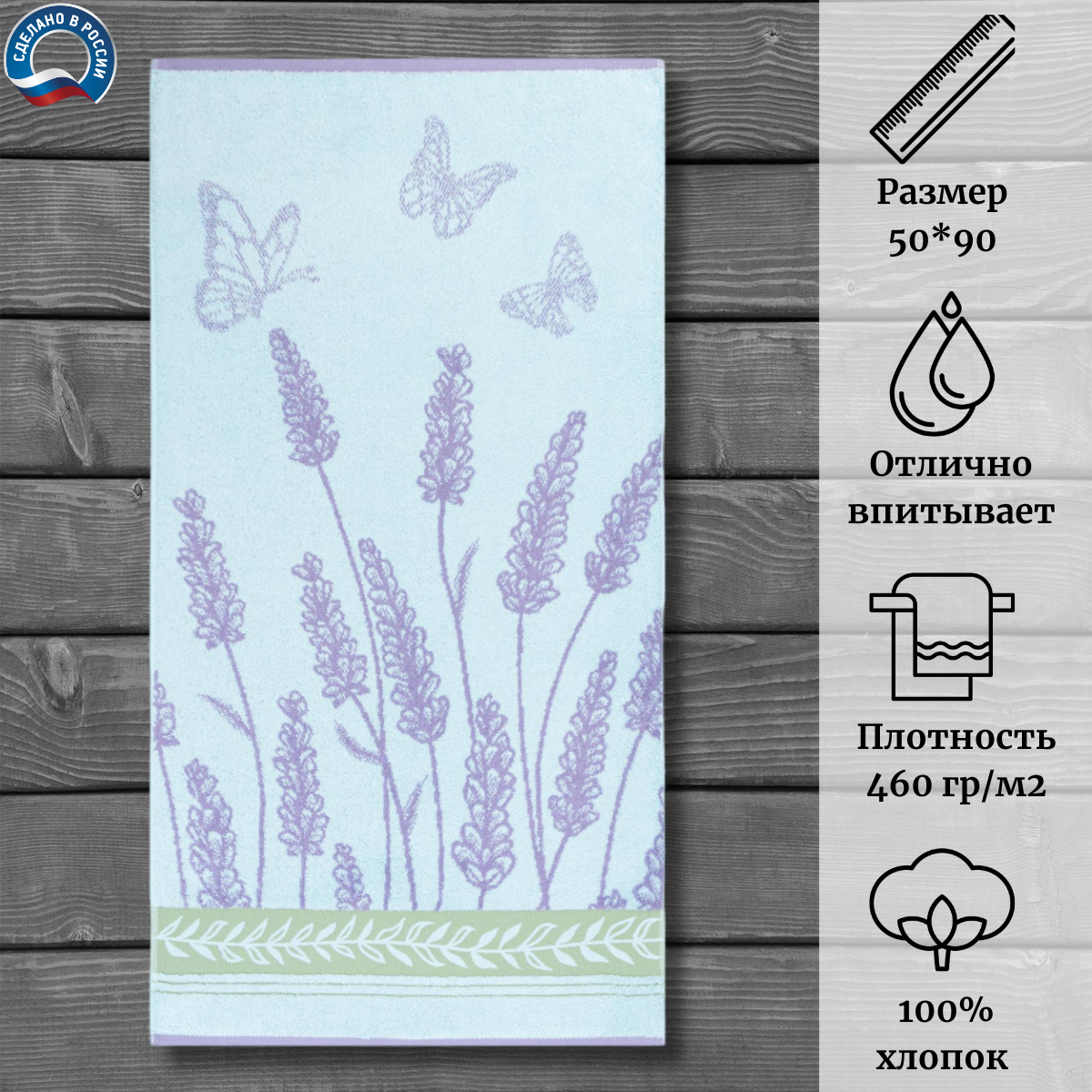 Махровая фактура ткани обеспечивает приятные тактильные ощущения и быстрое впитывание влаги. Плотность ткани составляет 460 г/м², что гарантирует долговечность и сохранение формы полотенца. Благодаря своим размерам (50х90 см) и форме, оно удобно в использовании после мытья рук и лица.