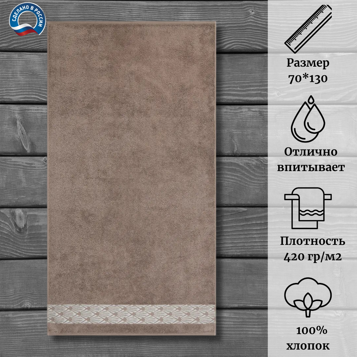 Полотенце произведено в России, что гарантирует высокое качество изделия. Плотность ткани составляет 420 г/м², что обеспечивает прочность и долговечность полотенца.