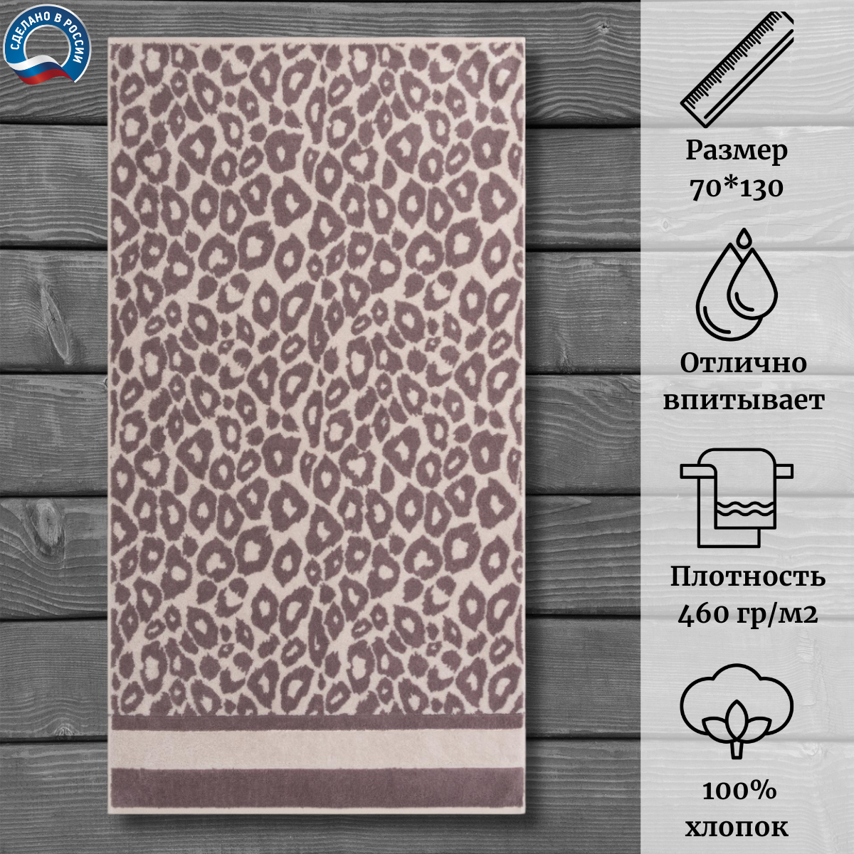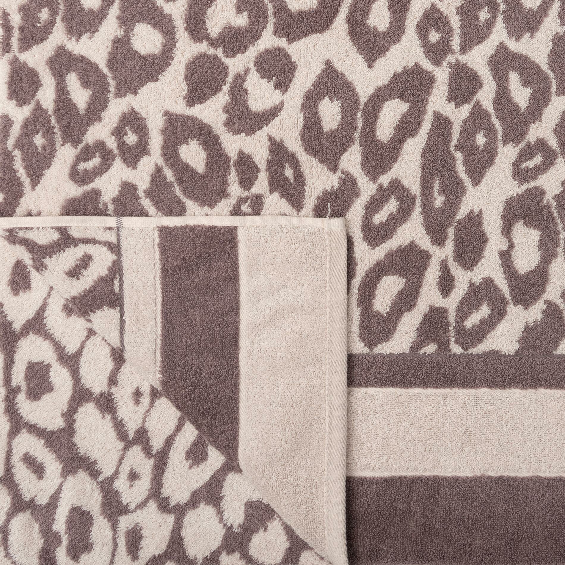 Дизайн полотенца выполнен в бежевом цвете с леопардовым рисунком, что придает ему оригинальность и стиль.