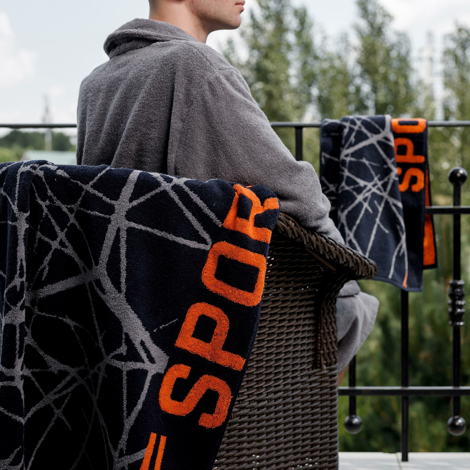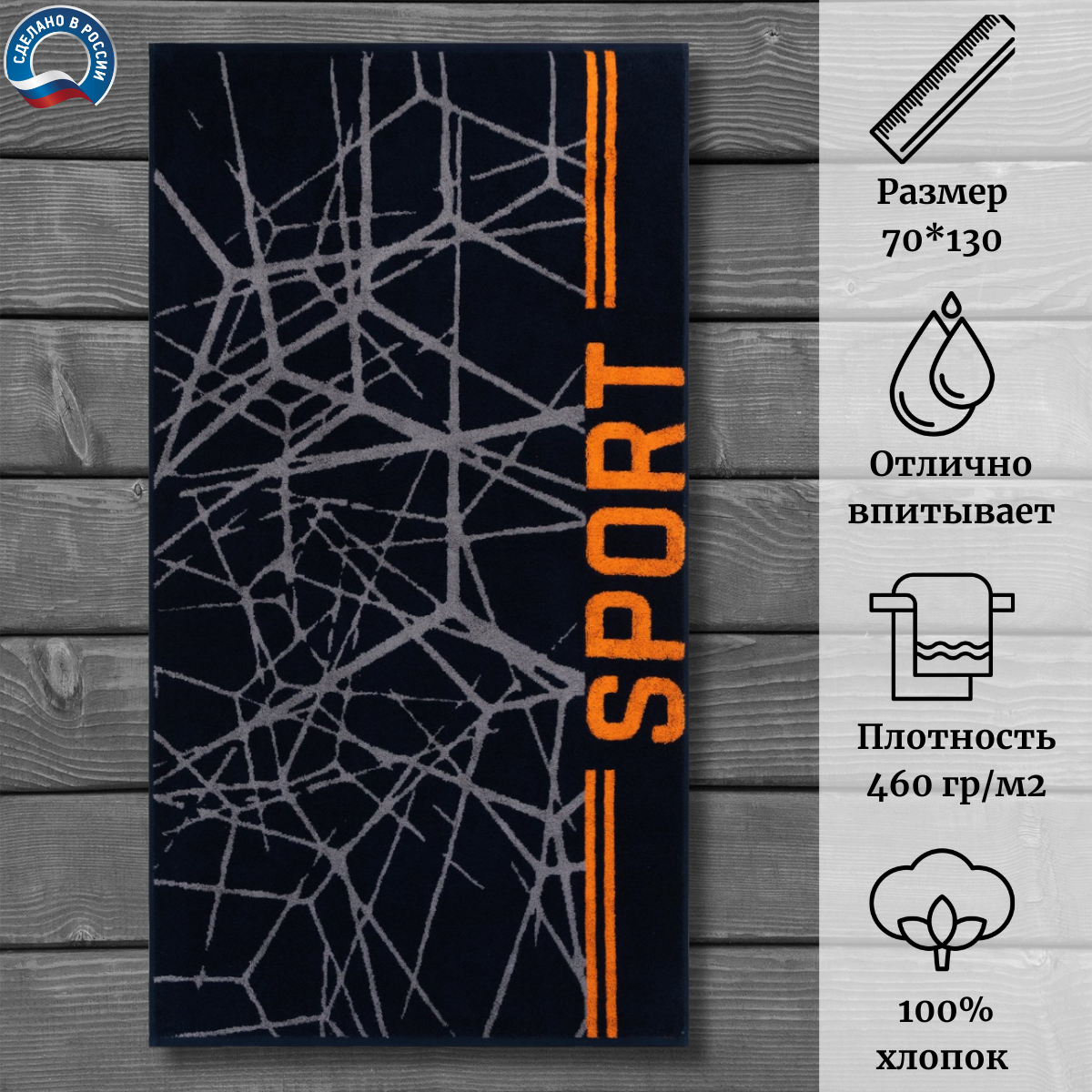 Дизайн полотенца выполнен в спортивном стиле, что придает ему оригинальность и стиль.