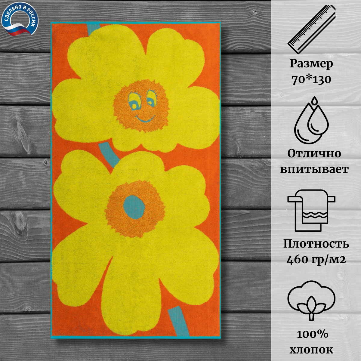 Полотенце выполнено в белом оранжевом цвете с желтыми цветами, что придает ему неповторимый стиль и оригинальность.