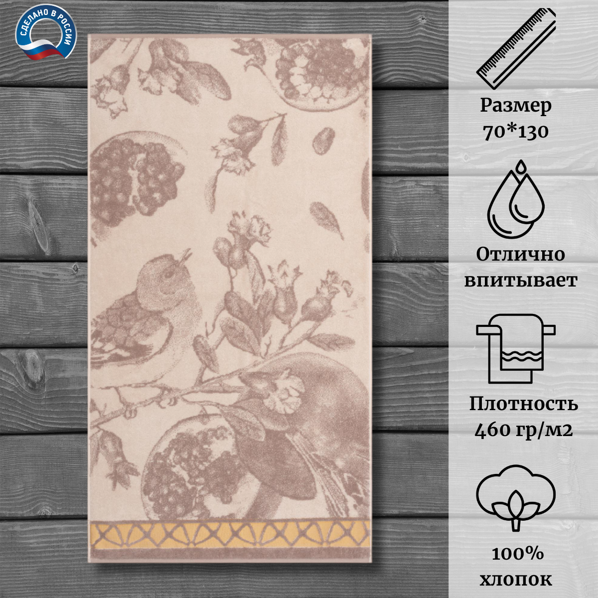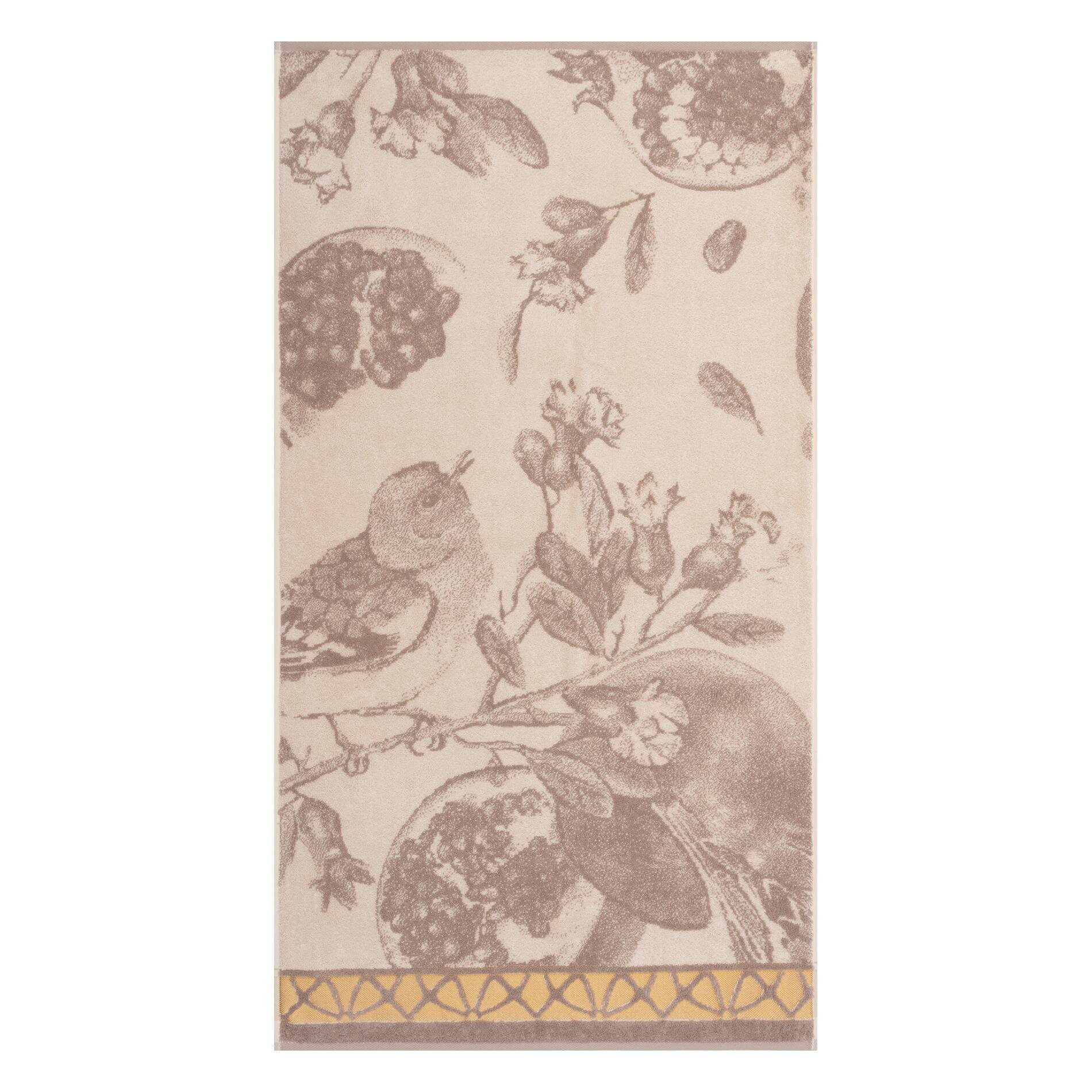 Дизайн полотенца выполнен в коричневом цвете с рисунком птиц, что придает ему оригинальность и стиль.