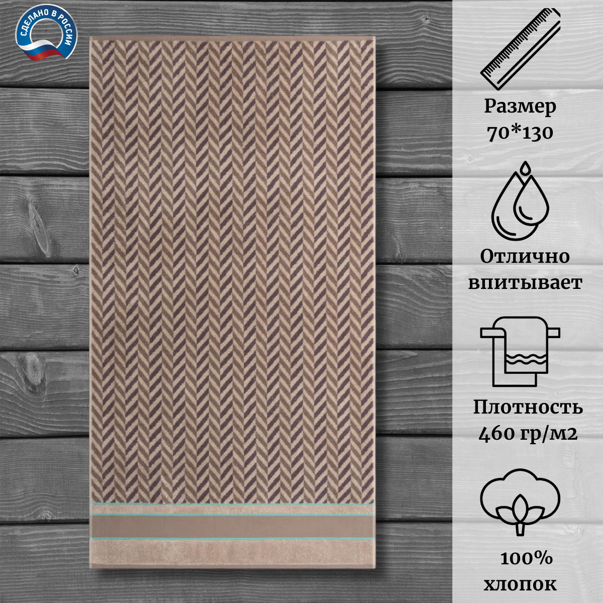 Полотенце выполнено из 100% хлопка, что гарантирует мягкость и комфорт при использовании. Плотность ткани составляет 460 г/м², что обеспечивает отличную впитываемость и быстрое высыхание. Благодаря своим размерам (70х130 см) и форме, оно удобно в использовании после душа и ванны.