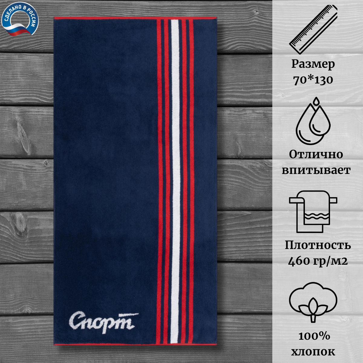 Полотенце выполнено в спортивном стиле, что придает ему стильный и современный вид. Размеры полотенца составляют 70 см в ширину и 130 см в длину, что позволяет использовать его для различных целей, будь то вытирание рук или тела после душа.