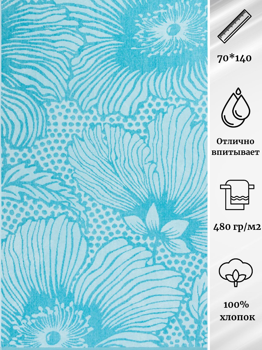 Велюровая фактура ткани полотенца обеспечивает комфорт и мягкость при использовании. Махра создает приятные ощущения на коже, а также отлично впитывает влагу.