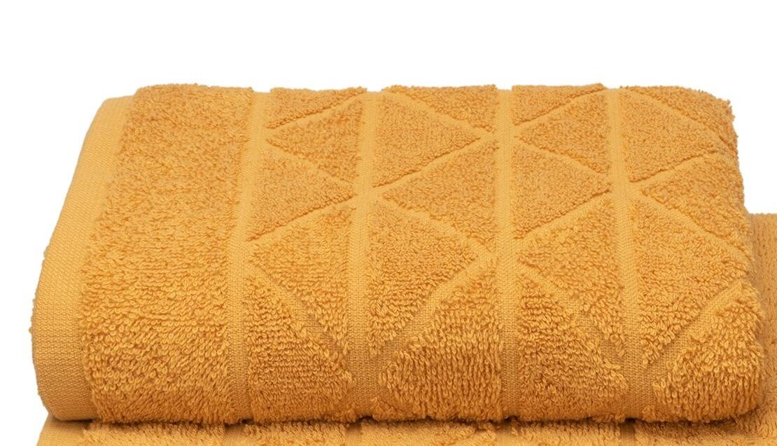 Полотенце выполнено в золотистом цвете без рисунка, что позволяет легко подобрать его к любому интерьеру ванной комнаты. Фактура ткани - махровая, что обеспечивает приятные тактильные ощущения при использовании.