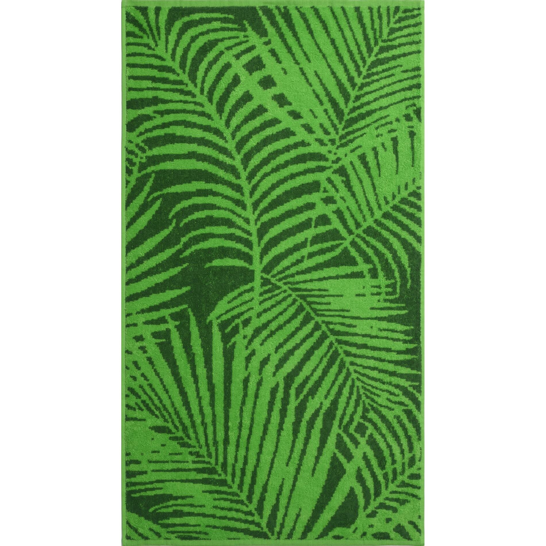 Дизайн полотенца выполнен в ярком зеленом цвете с рисунком листьев, что придаст вашей ванной комнате тропический колорит. Размер полотенца составляет 50х90 см, что позволяет удобно вытираться и сушить руки и лицо.
