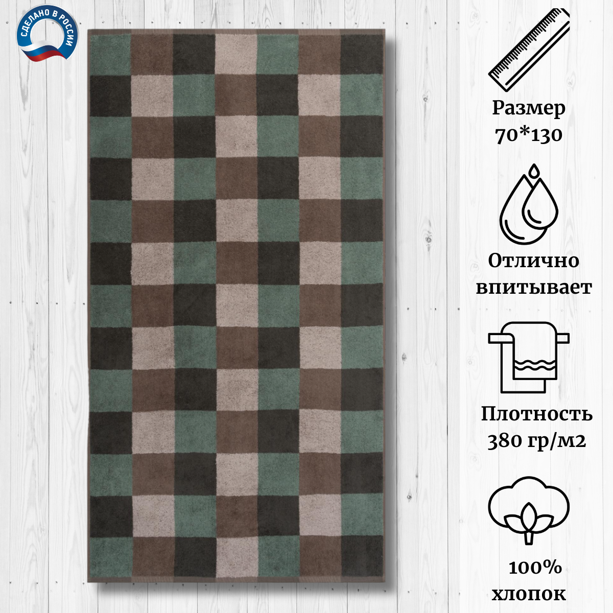 Дизайн полотенца выполнен в зеленом цвете с клетчатым рисунком, что придает ему оригинальность и стиль. Ширина полотенца составляет 70 см, а длина - 130 см, что делает его удобным для использования как дома.