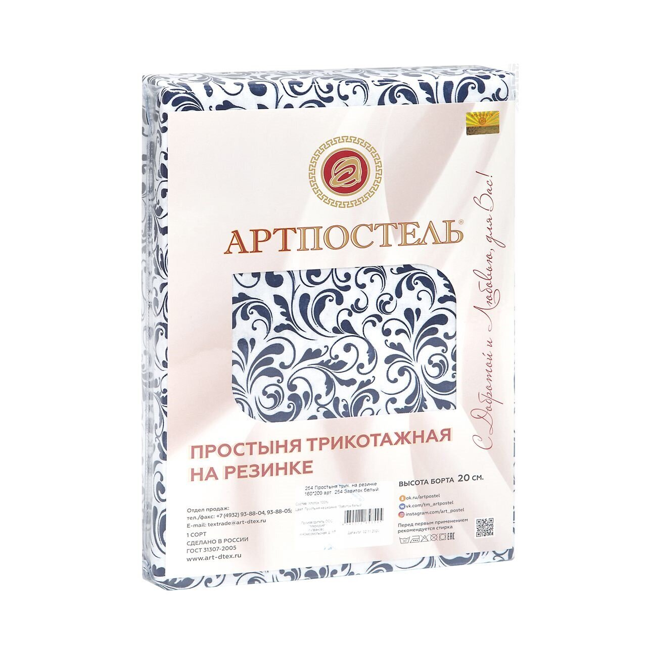 Простыня трикотажная на резинке "Арт-Постель" Завиток белый (160х200) арт. 254